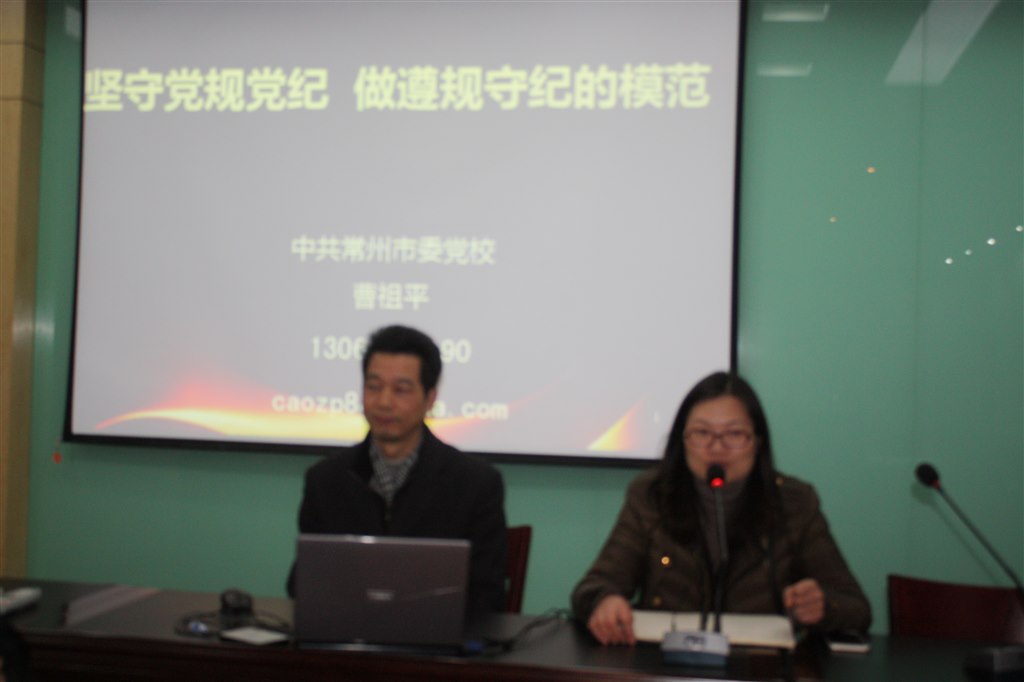 为进一步深化新桥实验小学党员对全面从严治党、加强党风廉政建设和反腐败斗争重要性的认识,自觉加强党性修养,进一步增强拒腐防变能力,始终把纪律摆在首位,永葆共产党员清正廉洁的政治本色,2016年1月22日上午,新桥实验小学党支部专门邀请常州市委党校曹祖平教授作专题讲座,学习新修订的《中国共产党廉洁自律准则》和《中国共产党纪律处分条例》。全体党员参加了会议。
