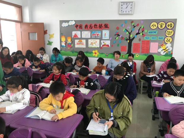 最后张老师对两位老师的课堂教学进行了指导。张老师首先肯定了两位老师在部分教学环节设计上的可取之处,例如仲老师对于生字“雨”的教学以及高老师在进行朗读教学时,充分展示了学生的读书习惯和语感语调的培养,极具感染力。但两堂课在整体教学内容设计上均存在不可忽视的问题,例如高老师在教学过程中的将小节分化,读书节奏较慢,童趣仍显不够。而仲老师在教学中缺乏一定的开放性,如可以提问“生活中还有什么像水泡泡一样圆鼓鼓的呢?”,以及文中最后“哪个小朋友能走进青蛙的心里,猜猜青蛙在想些什么呢?”等开放性较强的问题。
