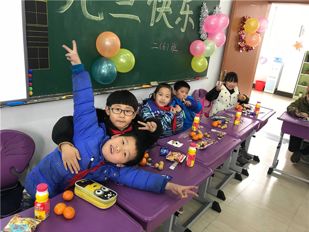 在接到学校布置的庆祝活动安排后,各班积极准备,爸爸妈妈们利用下班后的休息时间,将教室布置的温馨而又充满喜气。岁末之时寒风阵阵,冬日的校园内却似春意盎然,其乐融融,处处洋溢着浓浓的喜庆氛围! 一间间教室用彩带、气球、窗花等材料布置一新,地面、墙面被同学们打扫的格外干净。