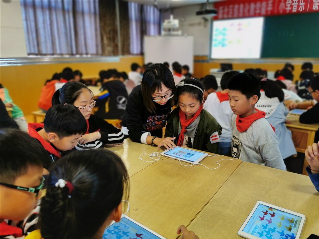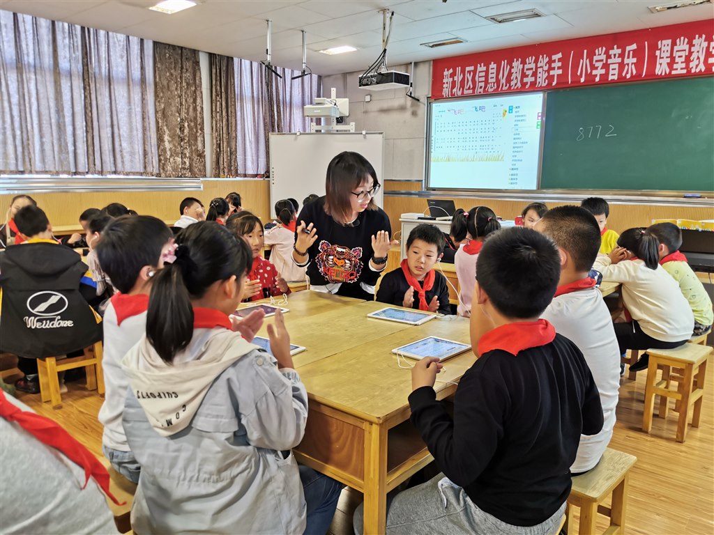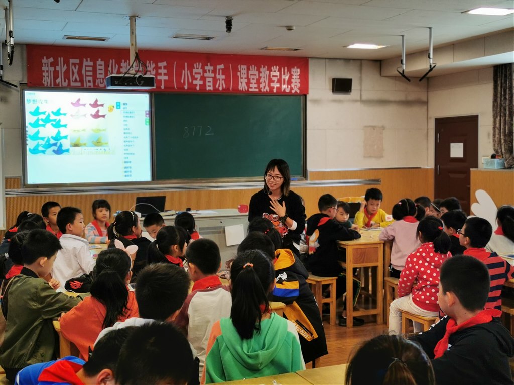音乐信息化教学能手课堂教学比赛于10月14日在奔牛小学举行。我校陈伊一老师执教《飞吧飞吧》,从学生的梦想出发,注重情感体验,运用珠峰后台,音轨合成软件等信息化手段,让学生们以小组合作的方式自主完成学习,高速有效的完成了二声部合唱的学习。“音”为有你,“乐”在其中,陈老师打破了传统的音乐课堂的教学设计,展示了信息化课堂特有的魅力。